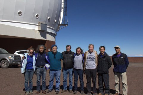 We work with the NASA ExoPlanet Science Institute lead by Charles Beichman to develop precision radial velocity calibration tools based on frequency combs (Astrocombs). In recent work we have field tested an electro-optical-based frequency comb at the Keck II observatory NIRSPEC spectrometer. In the photo below, some of our team members are shown at the summit of Mauna Kea near the Keck II telescope.